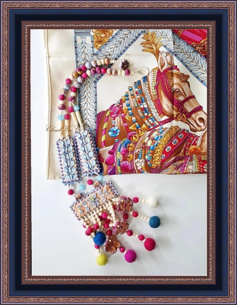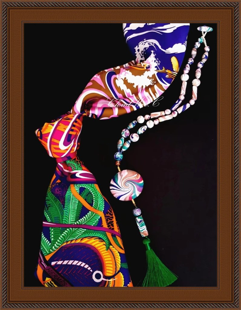 With the support of Hermès society friends and followers, CloudWei created her first blog, “Le Jardin de Cloud”, in February 2021. The content of the blog was all about the Hermès scarf. She works behind the scenes to progress the way to view, understand and appreciate the Hermès scarf. In there, she shared her private collection with in-depth study research, Hermès annual theme and design story, history, national culture, religions and spiritual traditions, mythology, geography, biology, art and humanity, artists’ design ideas and inspiration, styling and silk care practical tips and solutions, and handcrafted jewellery. One of her remarkable achievements was that she published an in-depth article about Kachinas with eight chapters in March 2021.